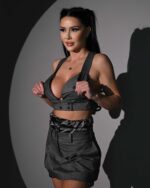 Modelul poartă măsura S dimensiuni bust 94 / talie 65 / șold 94, Înălțime 1,65 cm.