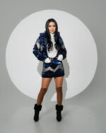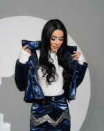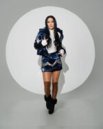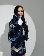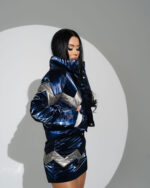 Compleu 2 piese – Geacă și Fustă din Fas Albastru cu Argintiu