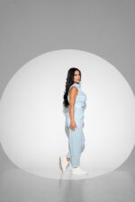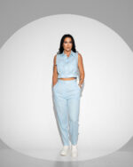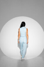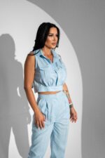 Acest costum albastru din in este piesa esențială pentru o vară în care vrei să te simți liberă și stilată. Format din două piese – vestă scurtă și pantaloni lungi –, compleul este realizat dintr-un in ușor și respirabil. Buzunarele cargo adaugă un aer urban-modern, în timp ce elasticul discret din zona spatelui asigură un plus de confort. Nuanța bleu pastel oferă prospețime ținutei, fiind potrivită pentru plimbări, city breaks sau ieșiri casual chic. Este un costum albastru care combină minimalismul cu funcționalitatea practică.