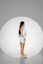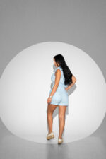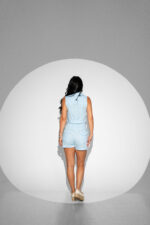 Costum vestă din in bleu, compus din două piese – vestă scurtă ce subliniază delicat talia și pantaloni scurți cu detalii cargo. Croiul lejer și betelia elastică oferă libertate de mișcare și confort termic în zilele călduroase. Buzunarele aplicate adaugă un aer modern, iar nuanța pastel transformă setul într-o alegere perfectă pentru outfituri urbane casual-chic.