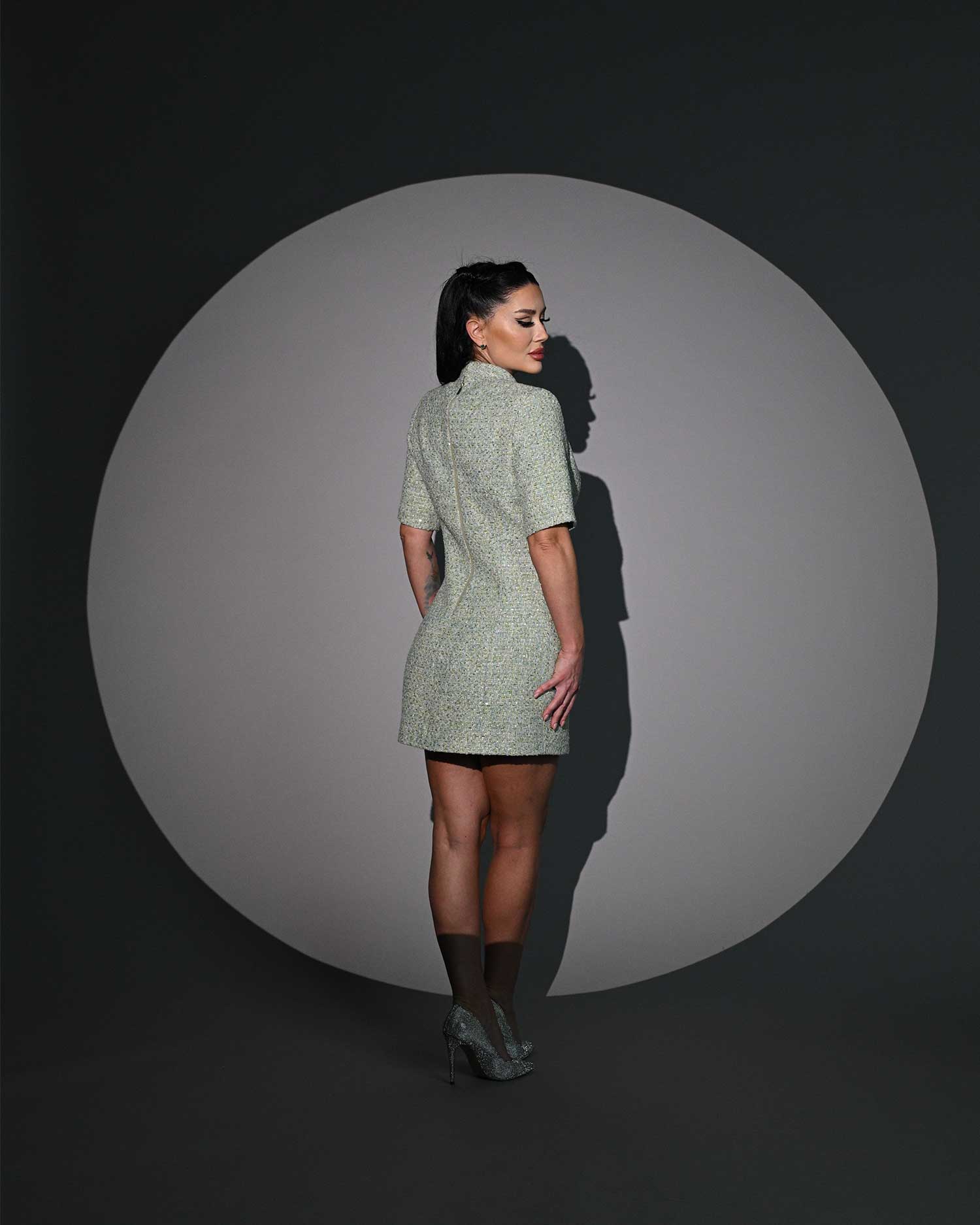 Rochie din boucle cu maneci scurte „ECLAT MENTHE”