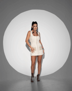 Modelul poartă măsura S dimensiuni bust 94 / talie 65 / șold 94, Înălțime 1,65 cm.